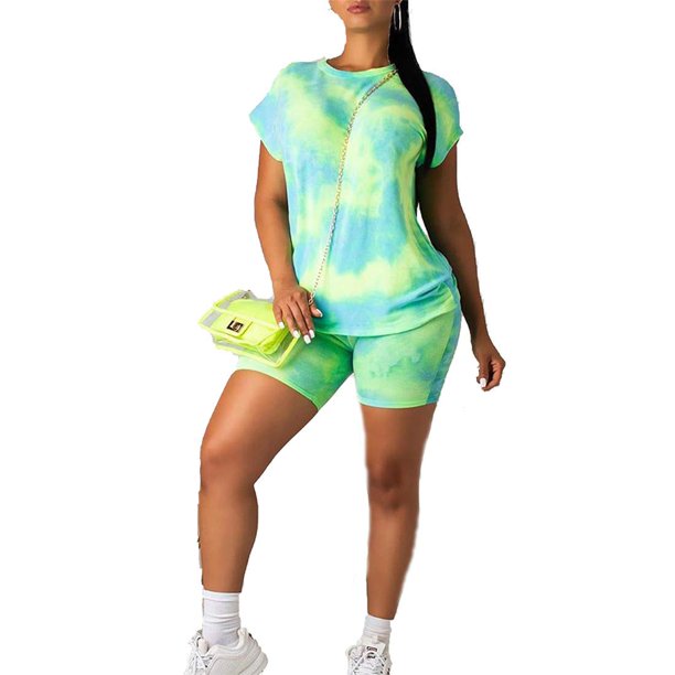 Tie Dye Tracksuit Women 2 Piece Clothing T Shirt And Biker Shorts Sweat Suits Walmart Com